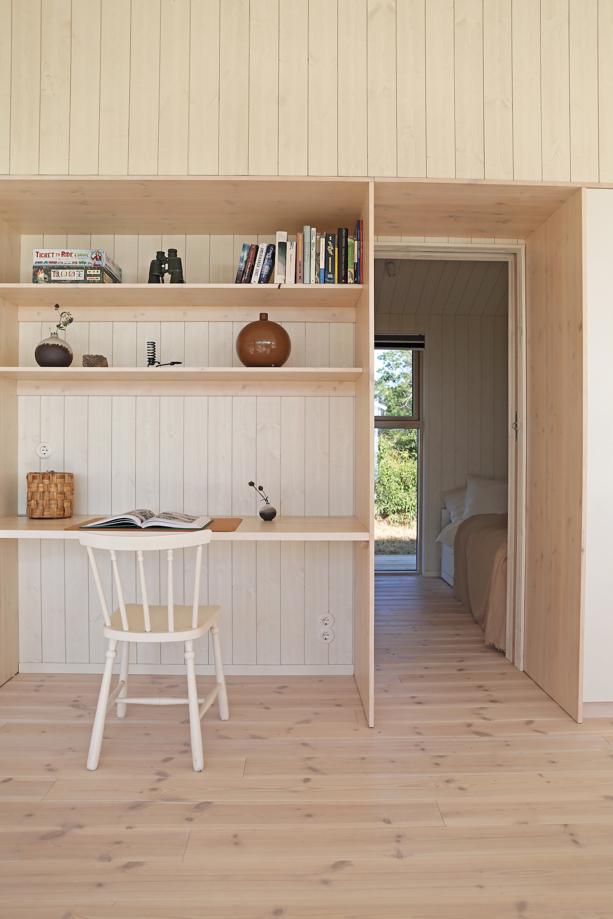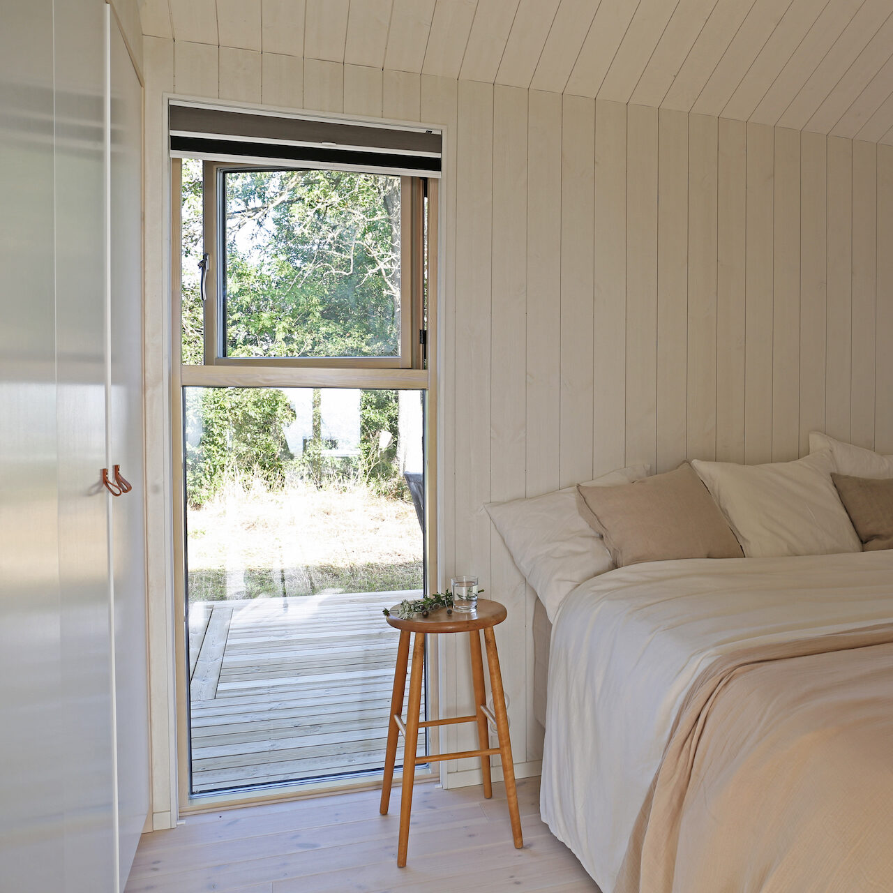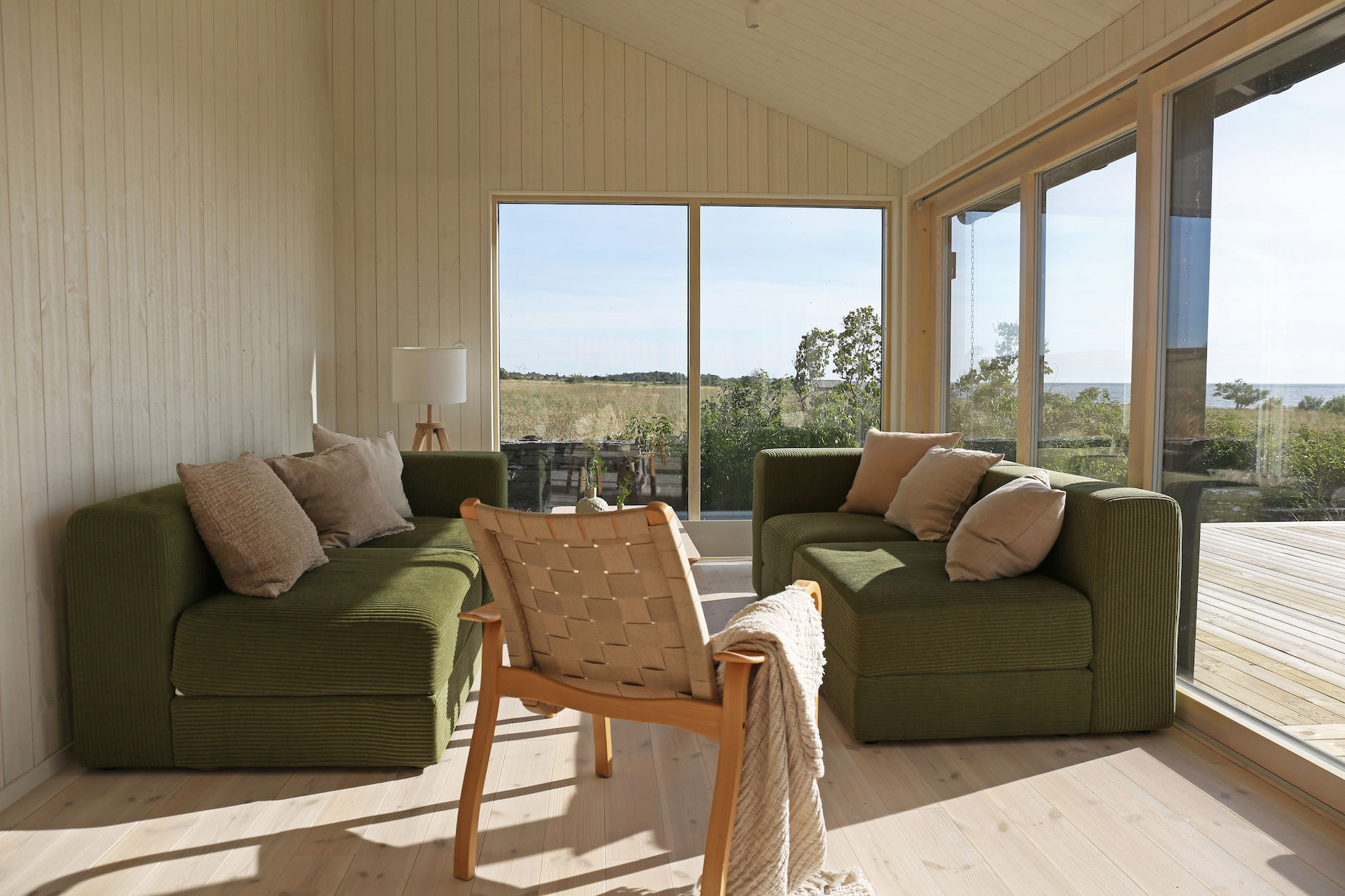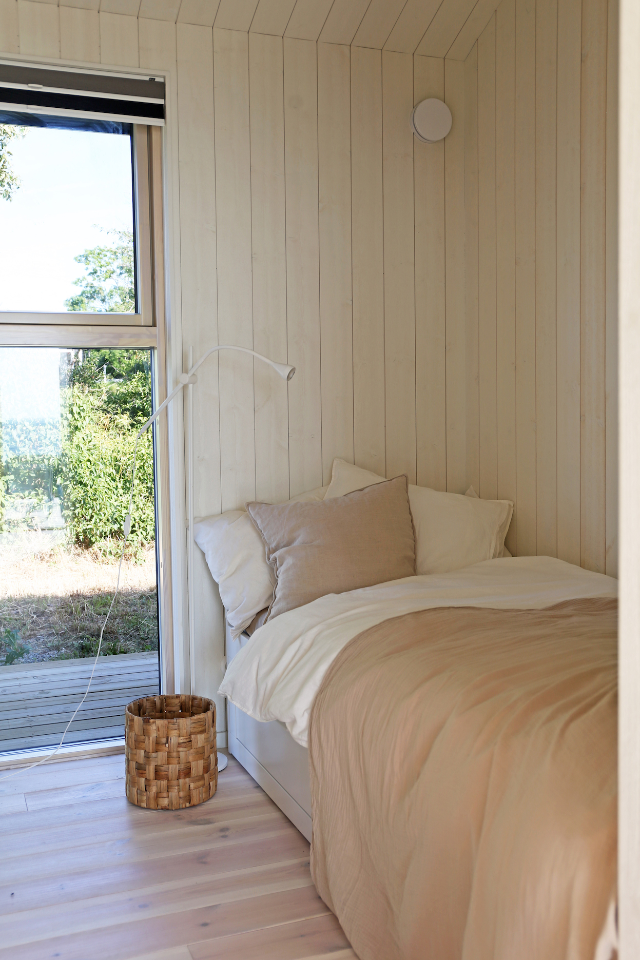 ”Vi har valt ett ganska färdig koncept från Sommarnöjen med vita träpanelväggar genom hela huset. Det känns som vi har en bra grundinredning som funkar genom hela huset, då är det lättare att sätta sin egen prägel på det.” berättar Anna.