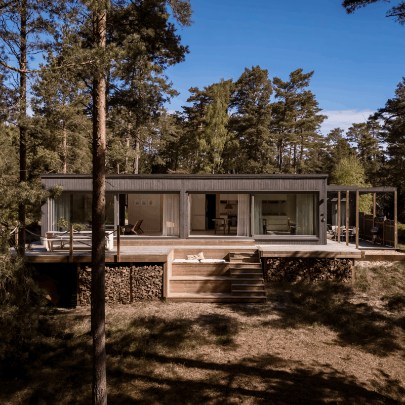 I tallskogen finns detta Modern Sommar 90 med extra takutsprång. Huset har interiörstil Lugn. Strax intill har familjen byggt ett Tidlös Sommar 40 som går under namnet Annexet. Detta med interiörstil Ren.