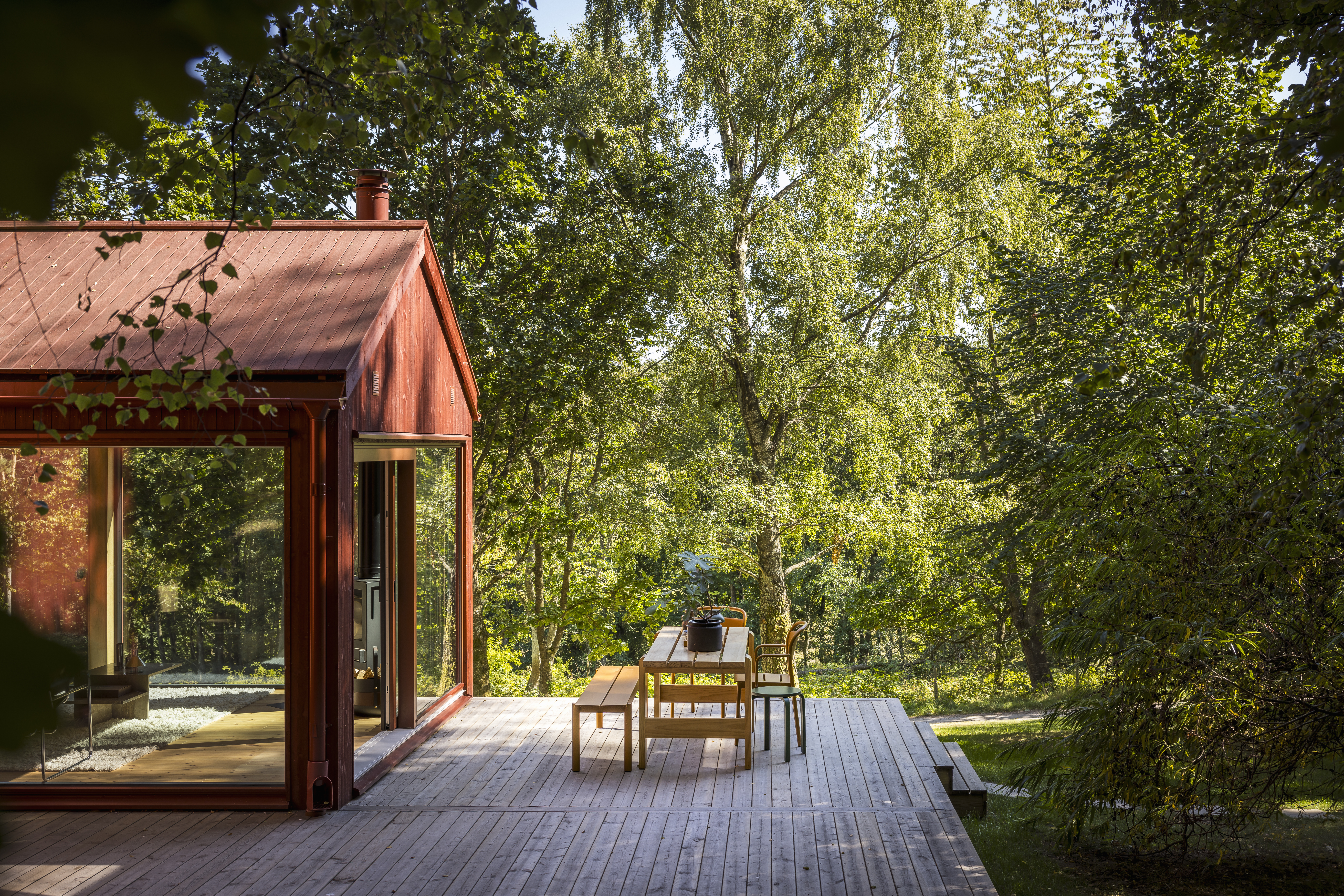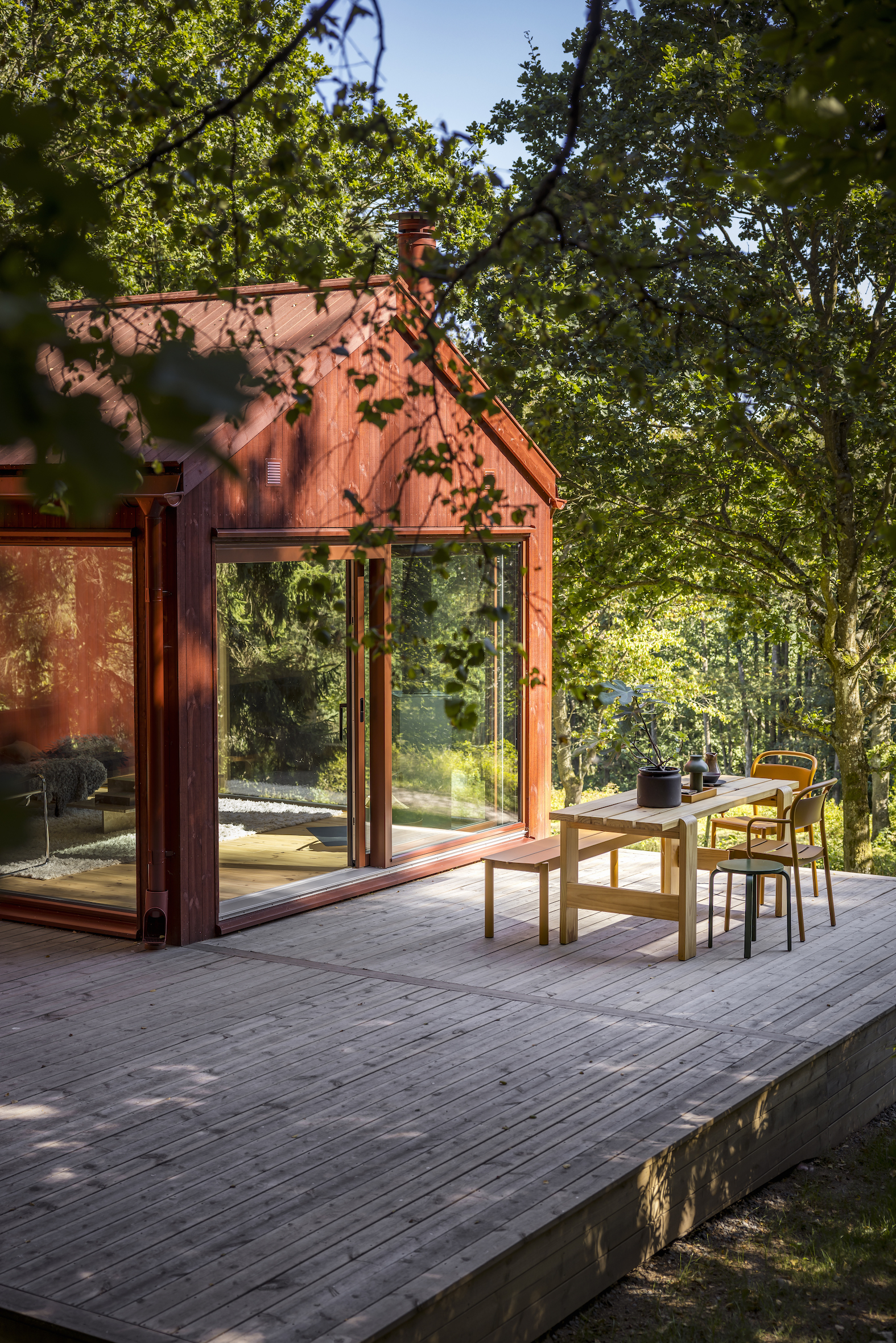 I tidlöst utförande har Sommar 70 en tydlig form och nära kontakt med naturen tack vare det skarpa sadeltaket utan takutsprång och obrutna skjutglaspartier.